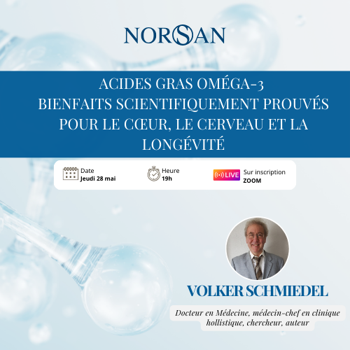 Les acides gras oméga-3 sont des nutriments essentiels fondamentaux pour notre santé et la prévention des maladies. Les webinaires NORSAN vous permettent d’accéder à des présentations thématiques ciblées avec des conseils pratiques apportés par un spécialiste de son domaine.